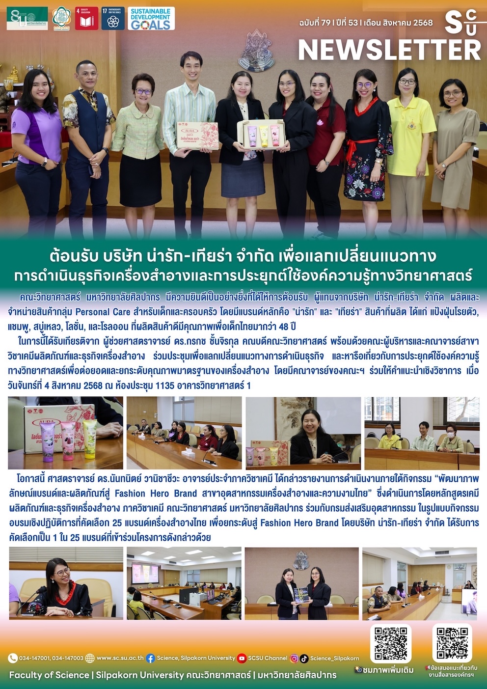บริษัท น่ารัก-เทียร่า จำกัด ร่วมกับ คณะวิทยาศาตร์ มหาลัยศิลปากร เพื่อแลกเปลี่ยนแนวทางการดำเนินธุรกิจ เครื่องสำอาง และประยุกต์ใช้องค์ความรู้ทางวิทยาศาสตร์